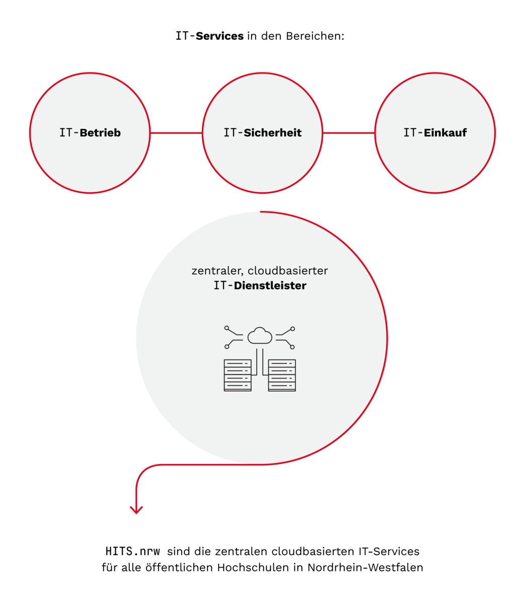 - IT-Beschaffung: Mit HITS-IT-Proc.nrw bauen wir ein Kompetenzzentrum auf, das die zentrale und rechtssichere Beschaffung von Software, Hardware und Dienstleistungen ermöglicht – das spart Zeit, Geld und Nerven aller beteiligten Institutionen.